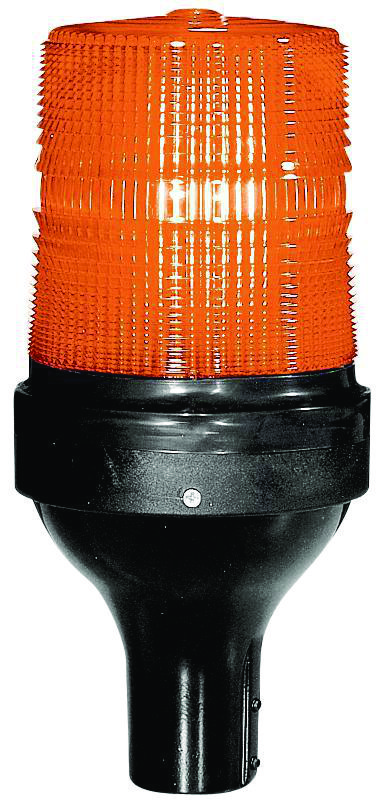 Blinklampe med xenonpære i orange. Konstrueret til industriel anvendelse på maskiner. Aluminium bund til overflade- eller polmontering.