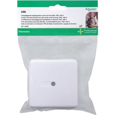 Denne Blist U56 forgreningsdåse er designet til overflademontering og tilbyder en pålidelig løsning til kabelinstallationer. Dåsen er udstyret med et skruefast dæksel, der sikrer en sikker og stabil lukning, samt klemrækker af skruetype for nem og sikker tilslutning af ledninger.