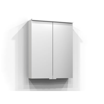 Hvidt Bloc spejlskab med integreret spejllampe, stikkontakt og IP44 klassificering. Ideelt til badeværelset med en lysfarve på 3400 K.