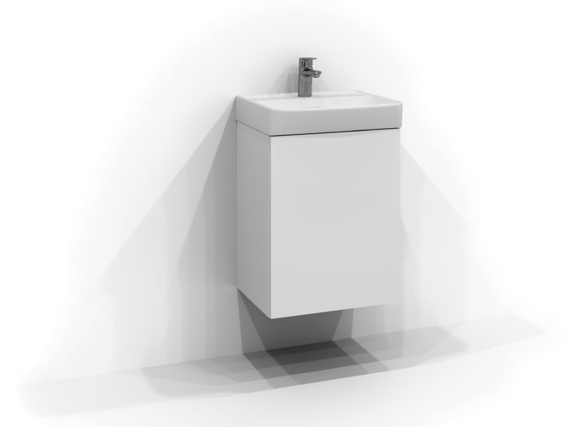 Hvidt Bloc underskab med én låge, soft close og vendbar montering. Måler 45 x 35 cm og har en højde på 57 cm.