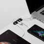 Cable Drop Multis unikke design gør kabelstyring nemt, og det holder alle kabler omhyggeligt, så de ikke falder ned, hver gang du frakobler din laptop, mobiltelefon osv.