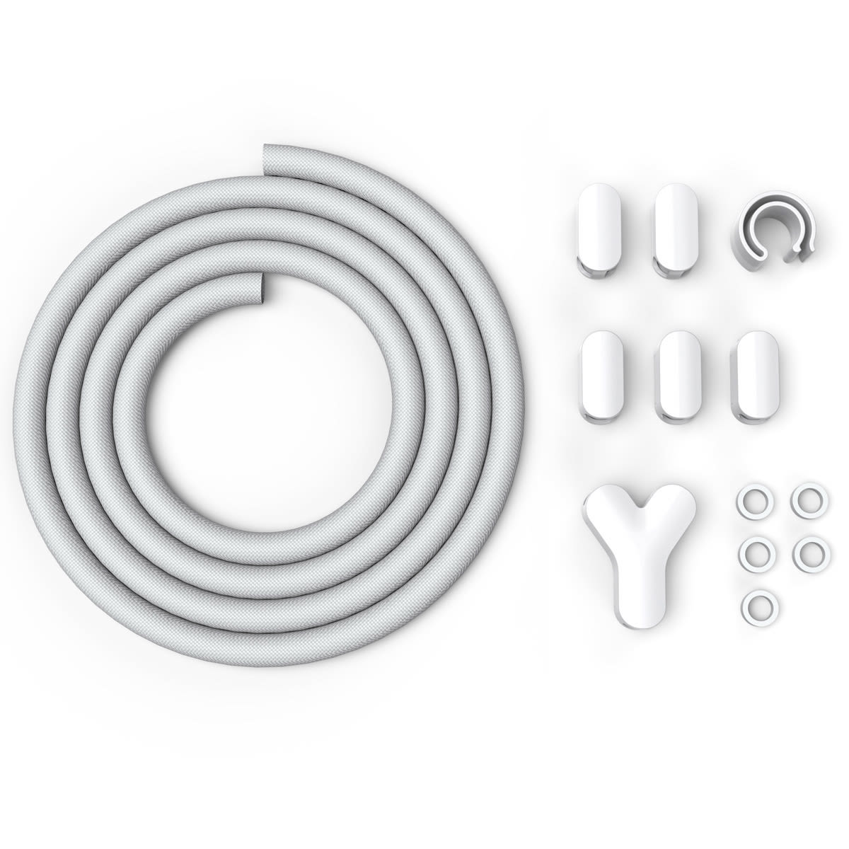 Det medfølgende værktøj gør det nemmere end nogensinde at samle ledningerne, og med de klæbende beslag kan du fastgøre kabelsokken langs væggen, under skrivebordet, bag tv-bordet osv. Pakken indeholder også en smart Y-forgrening.