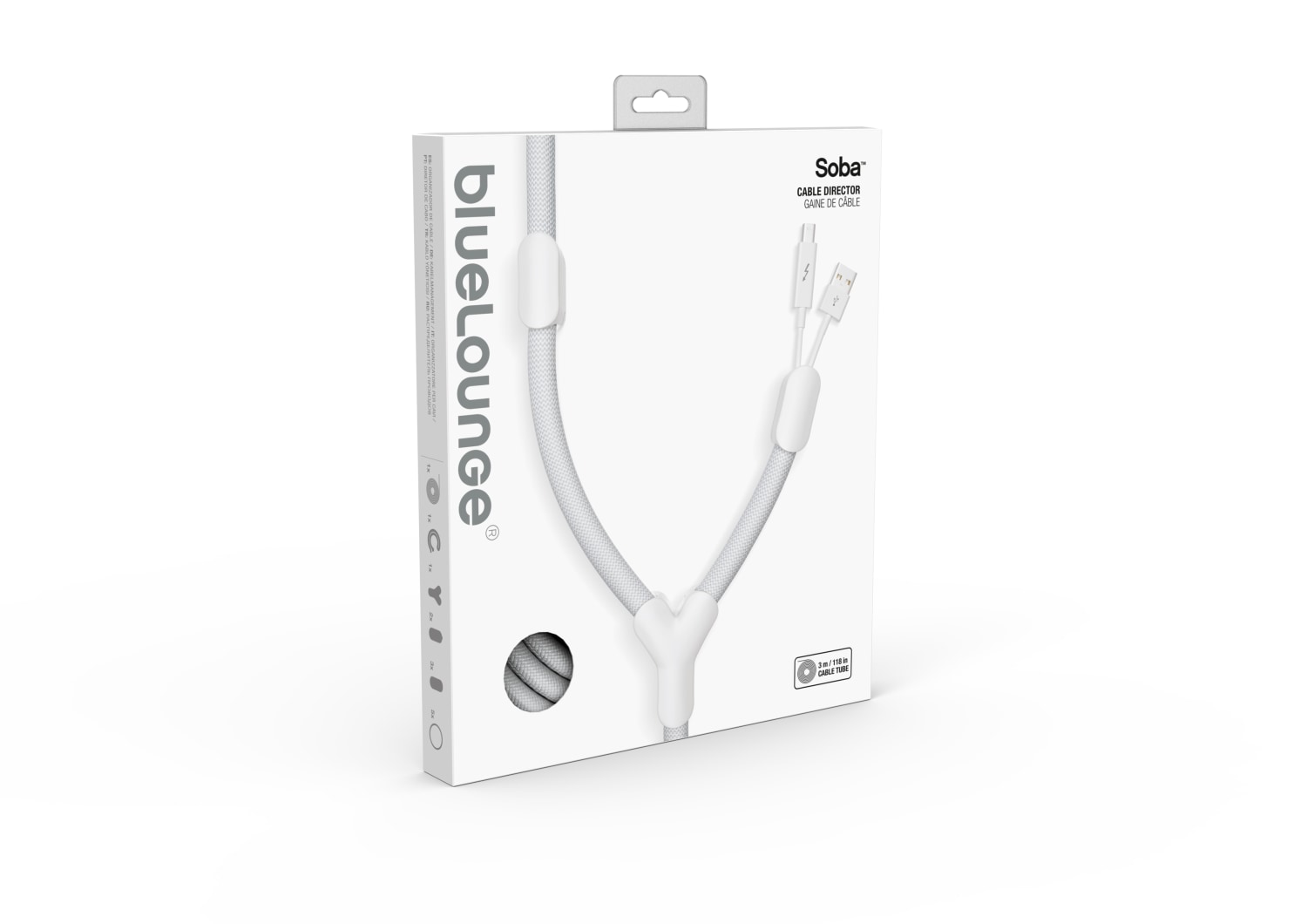 Bluelounge Soba er en innovativ kabelsok, der samler, skjuler og organiserer kabler. Inkluderer værktøj for nem håndtering og montering.