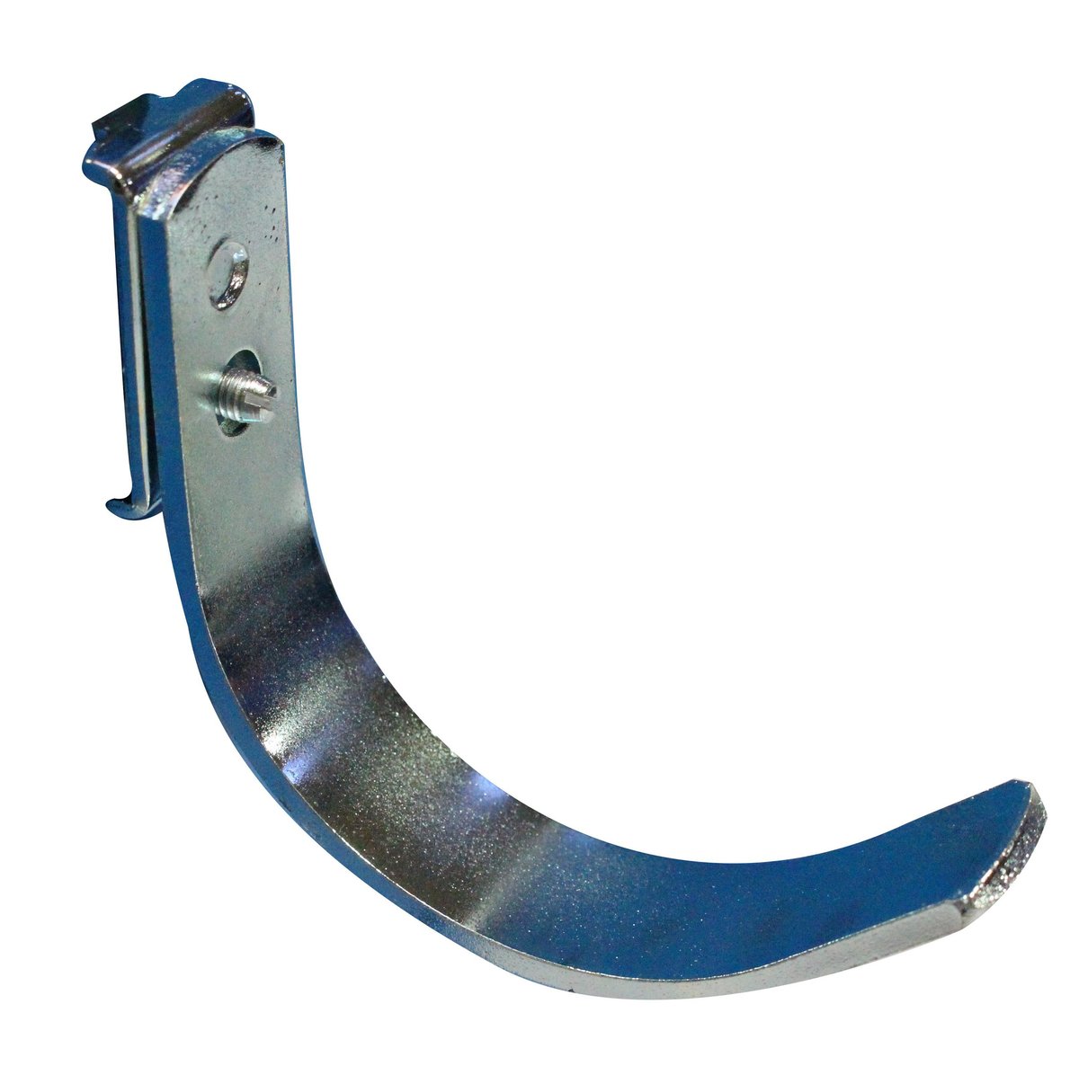 Bøjle i fladstål, 3 x 20 mm. Enkelt bagplade. Passer til hulplade med firkantede huller. Huldimension 9 x 9 mm. Centerafstand 34 mm og 38 mm.
