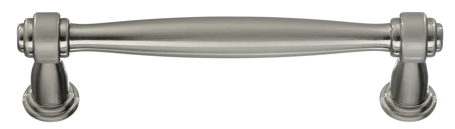 Stilfuldt bøjlegreb i børstet nikkel med en center afstand på 96 mm. Perfekt til køkken og bad.