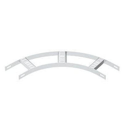 Denne 90 graders bøjning er specielt designet til marine kabelstige type SL 42. Den er udstyret med en sidehøjde på 25 mm og har indsvejsede, perforerede trapezsprosser, der er åbne opad. Konstruktionen sikrer en robust og pålidelig løsning til kabelhåndtering i marine miljøer.