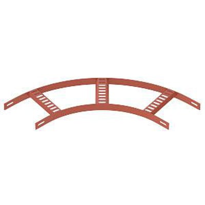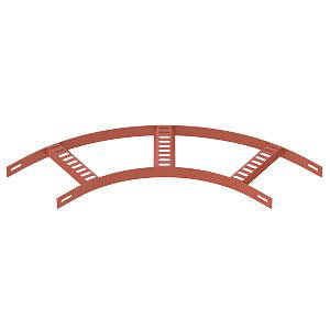 90°-bøjning til marine kabelstige type SL 42 med 25 mm sidehøjde og indsvejsede, perforerede trapezsprosser, der er åbne opad.