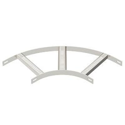 Denne 90°-bøjning er designet til marine kabelstige type SL 62 med en sidehøjde på 40 mm. Den er udstyret med påsvejsede, perforerede trapezsprosser, der er åbne opad, hvilket sikrer en robust og funktionel løsning til kabelhåndtering.
