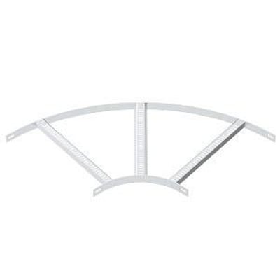 90°-bøjning til marine kabelstige type SL 62 med 40 mm sidehøjde og påsvejste, perforerede trapezsprosser, der er åbne opad.