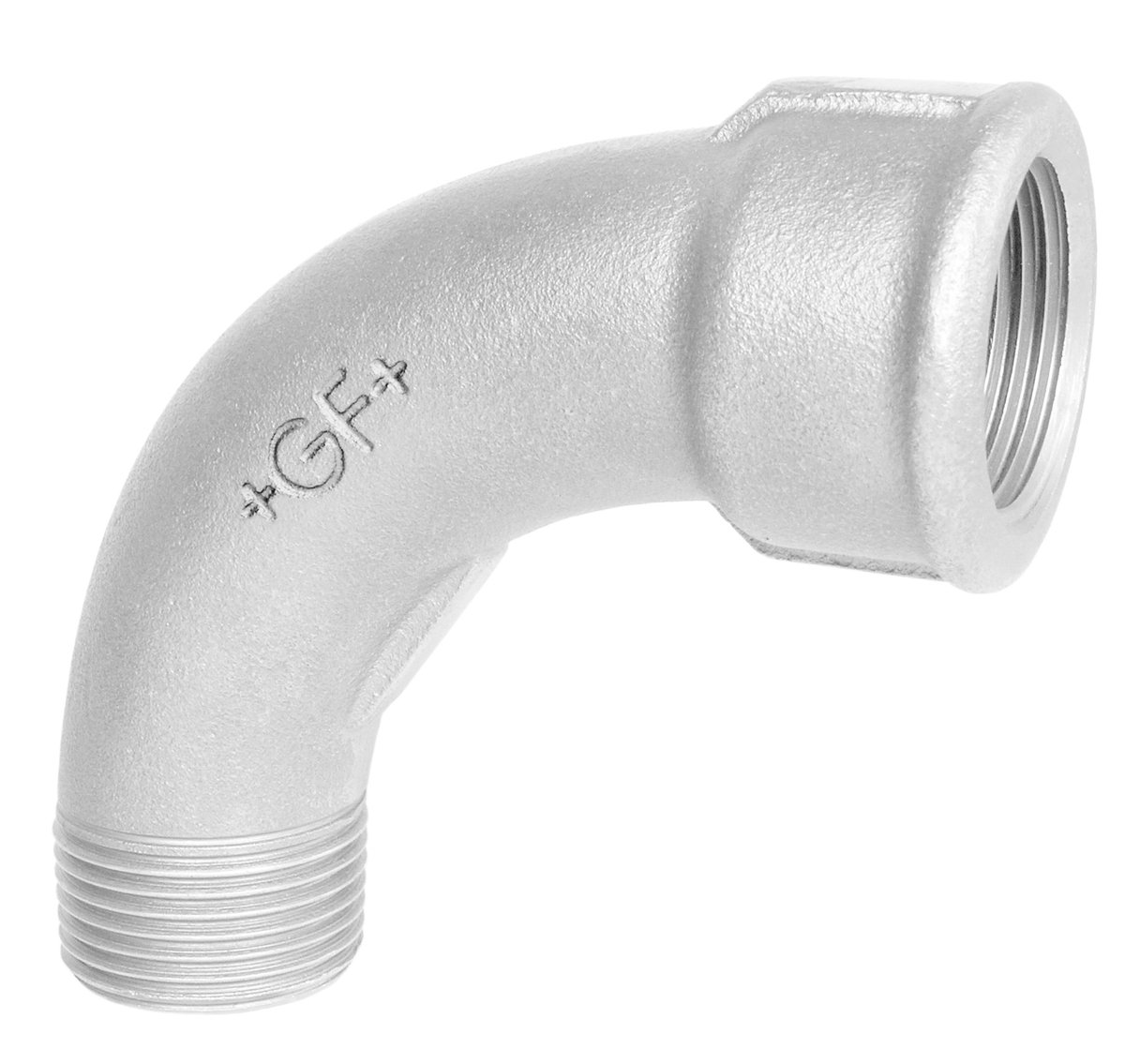 Galvaniseret 90° bøjning med lang muffe og nippel, ideel til VVS-installationer. Standard EN10242 (ISO49).
