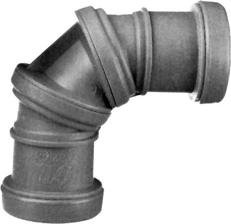 Purus Jotiflex trinløs drejbar bøjning 0-90° med 2 muffer, Ø40mm. Grå PP plast, VA-Godkendt.