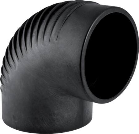 Formstykker af PEH til svejsning, der anvendes til spildevandsinstallationer. Med TPE-lyddæmpning, hvilket gør dem velegnede til bygninger med høje krav til lyddæmpning.