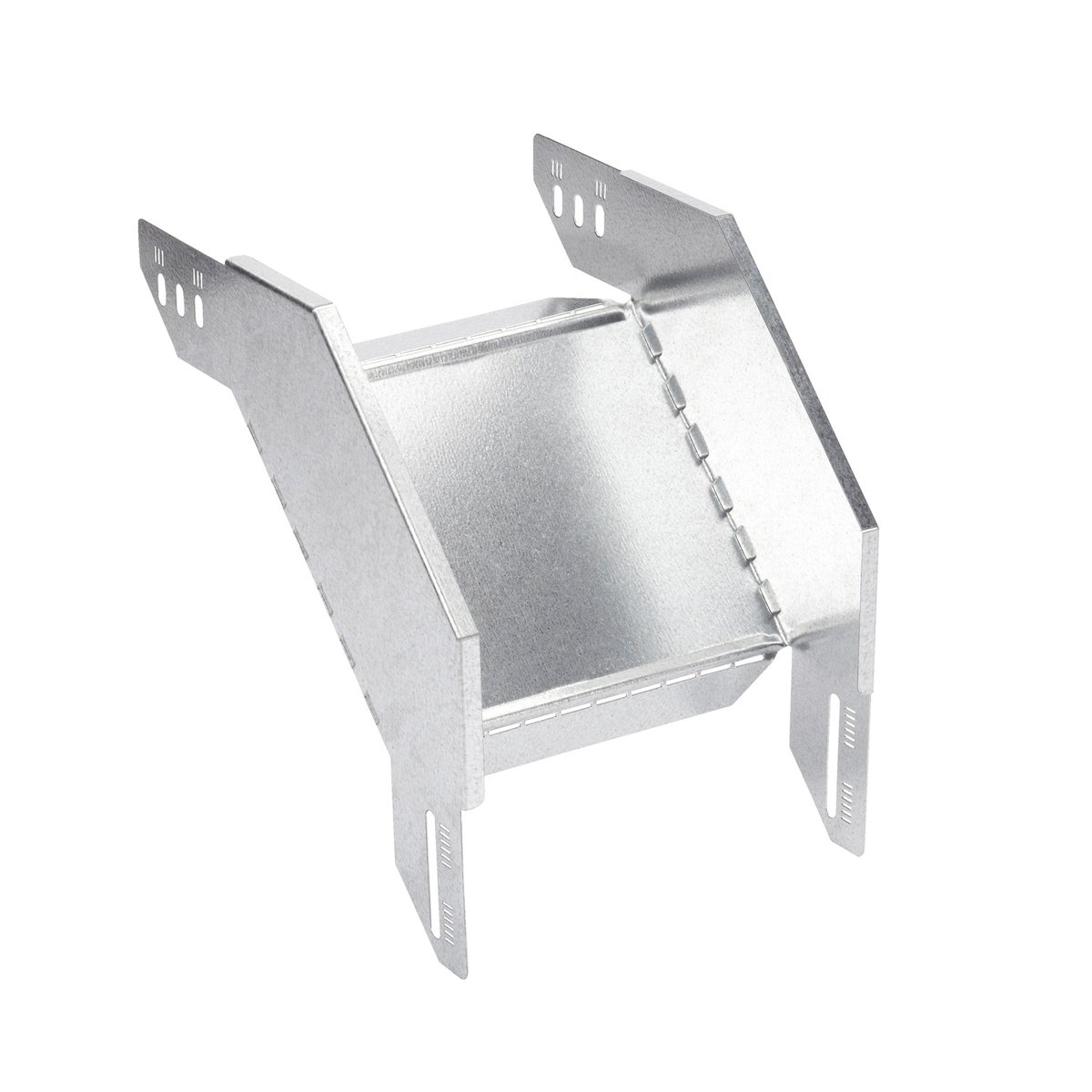 Udvendig bøjning på 90 grader. Monteres ved at siderne skubbes ind i bakken, og bundflappen samtidig skubbes nedenunder, hvilket understøtter bakken og beskytter kablerne.