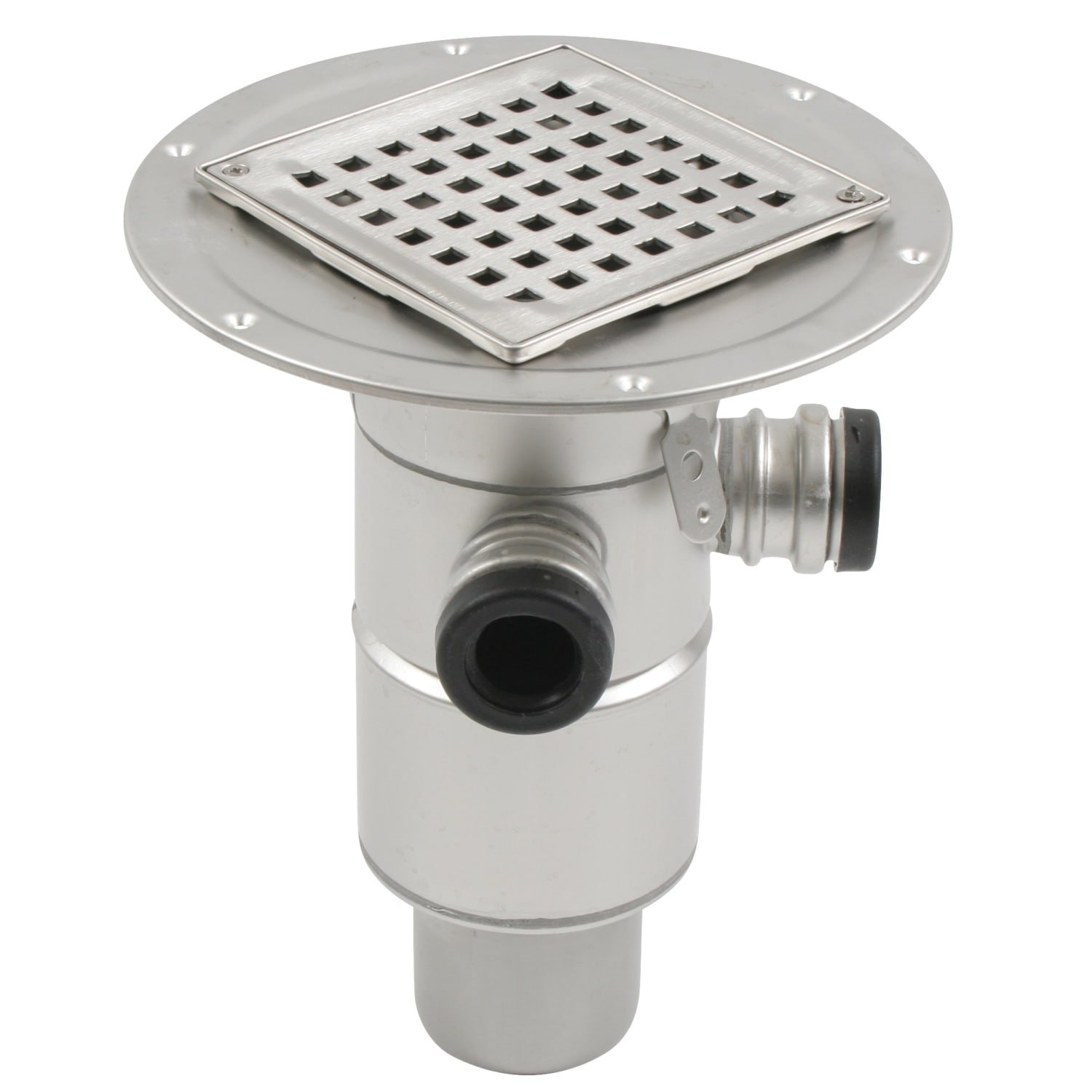 Dette justerbare boligafløb er ideelt til badeværelser med beton- eller flisegulve. Det er udstyret med et sideindløb, der giver mulighed for tilslutning af eksempelvis en vaskemaskine eller et andet afløb.
