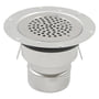 Justerbart boligafløb Circle til vinylgulv med rist (Ø155mm) og udløb (Ø110mm). Fremstillet i syrefast stål (AISI316L/EN1.4404).