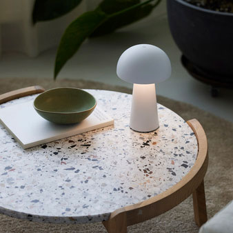 Denne fine, hvide bordlampe er designet til at blive opladt igen og igen, hvilket gør den ideel til både indendørs og udendørs brug. Placer den på havebordet for en hyggelig aftenbelysning eller brug den som en praktisk natlampe ved sengebordet.