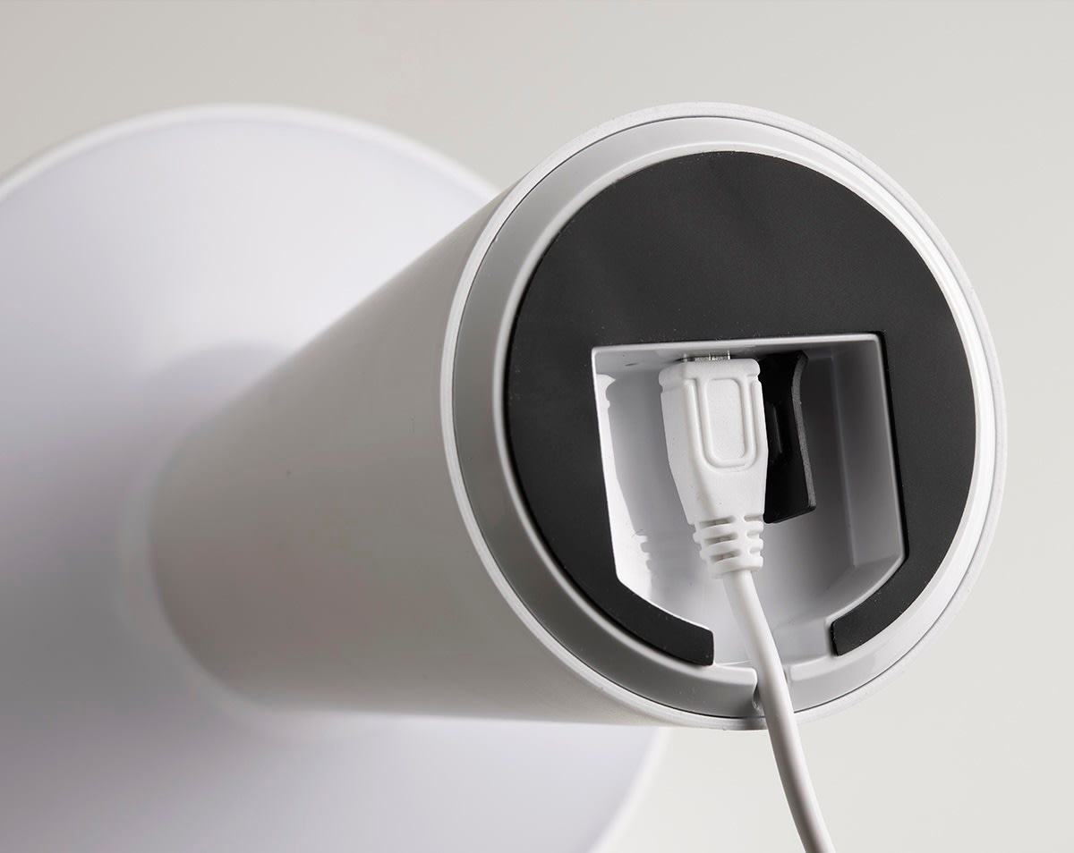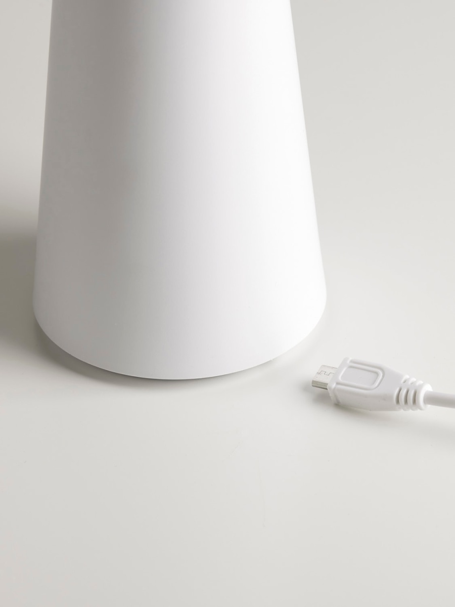 Lampen er designet med en 3-trins dæmpbar touch-kontakt, der giver dig mulighed for at justere lysstyrken efter behov. Der medfølger et USB-kabel til nem opladning, og lampen fås også i hvid og sort, begge med en lækker mat finish.