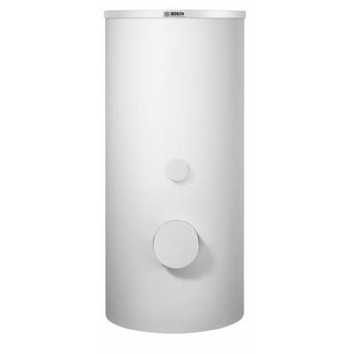 Bosch 400L solvarmebeholder til brugsvandsproduktion med solvarme og en anden varmekilde, f.eks. en luft/væske varmepumpe. Rengøring via indbygget rensedæksel.