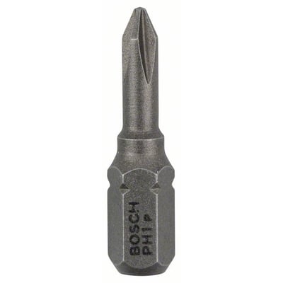 Bosch bits PH 1, designet til præcis skruning. Pakke med 25 stk. i størrelsen 1/4" x 25 mm, ideel til professionel brug.