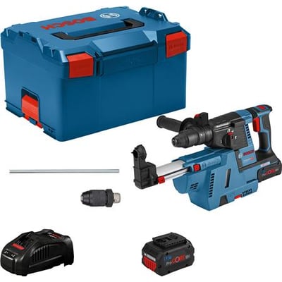 GBH 18V-26 F Professional med vekselpatron er universalmaskinen i kategorien med Boschs SDS plus batteridrevne borehamre, hvilket gør den perfekt til daglig brug. En ekstra GDE 18V-16 Professional støvudsugning kan sammenbygges med hammeren, der dermed bliver til en integreret HEPA-støvløsning med maksimal mobilitet. Borehammeren har også KickBack Control og Electronic Precision Control (EPC) til bedre håndtering og øget brugerbeskyttelse. Dens kraftige motor yder en slagenergi på 2,6 J til hurtig materialefjernelse.