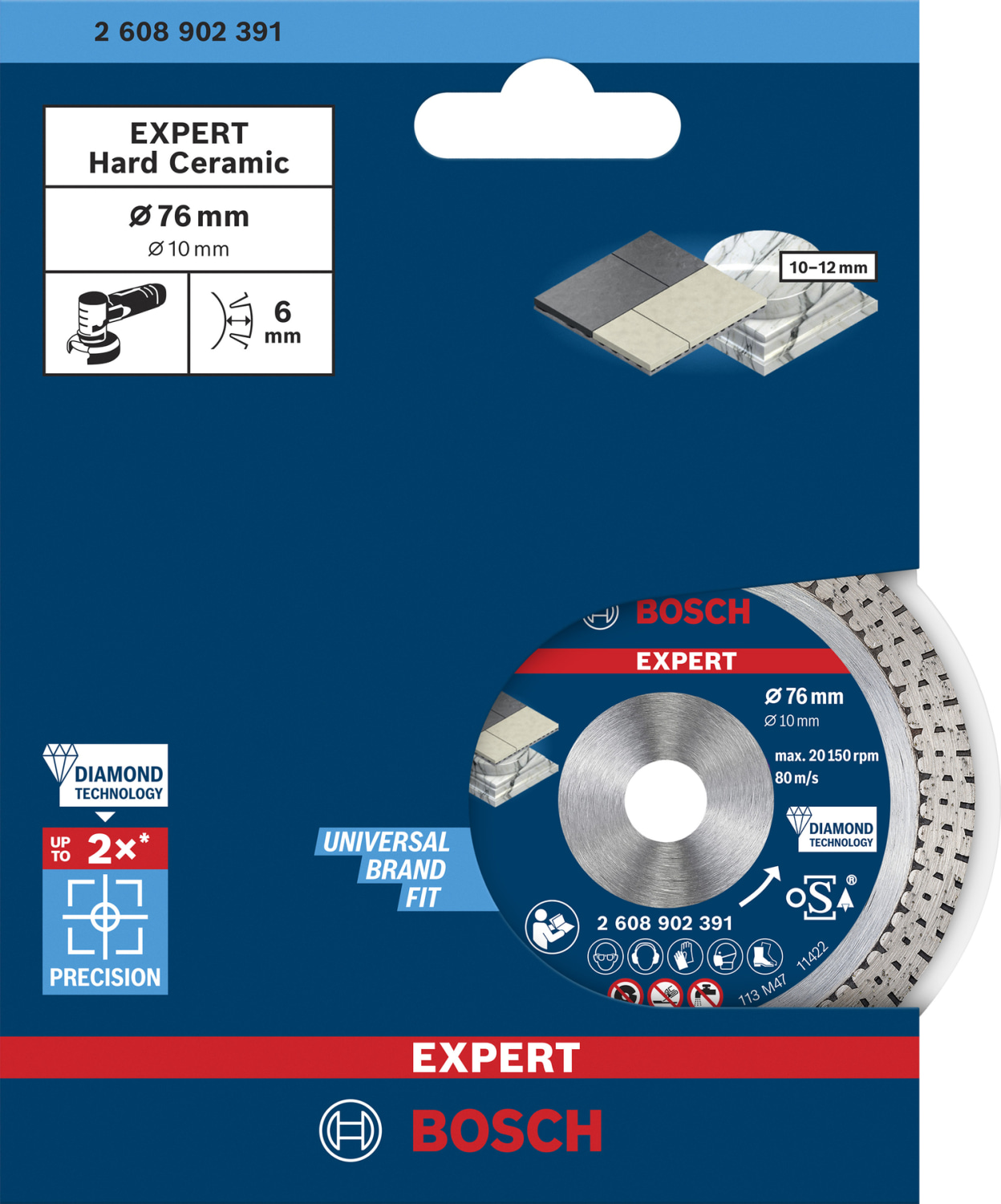 Denne diamantskæreskive fra Bosch er specielt designet til at skære i hårde materialer som keramik, porcelæn og fliser. Med en diameter på 76 mm og et centreringshul på 10 mm sikrer den effektive og præcise snit.