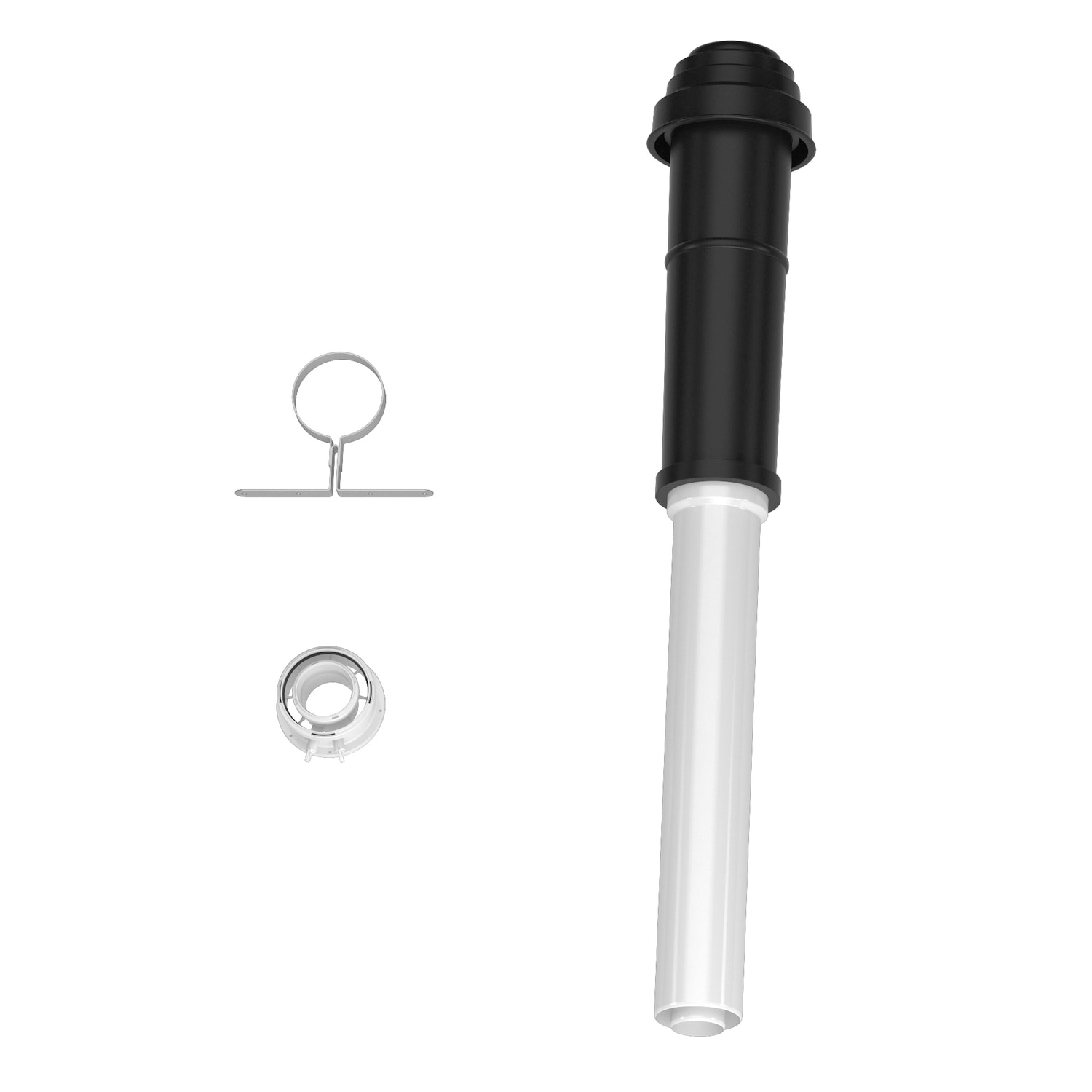 Komplet aftrækspakke fra Bosch til lodret, balanceret aftræk. Indeholder kedeladapter, rør med skydestykke og top (550-1169 mm) samt rørbærer. CE-godkendt.