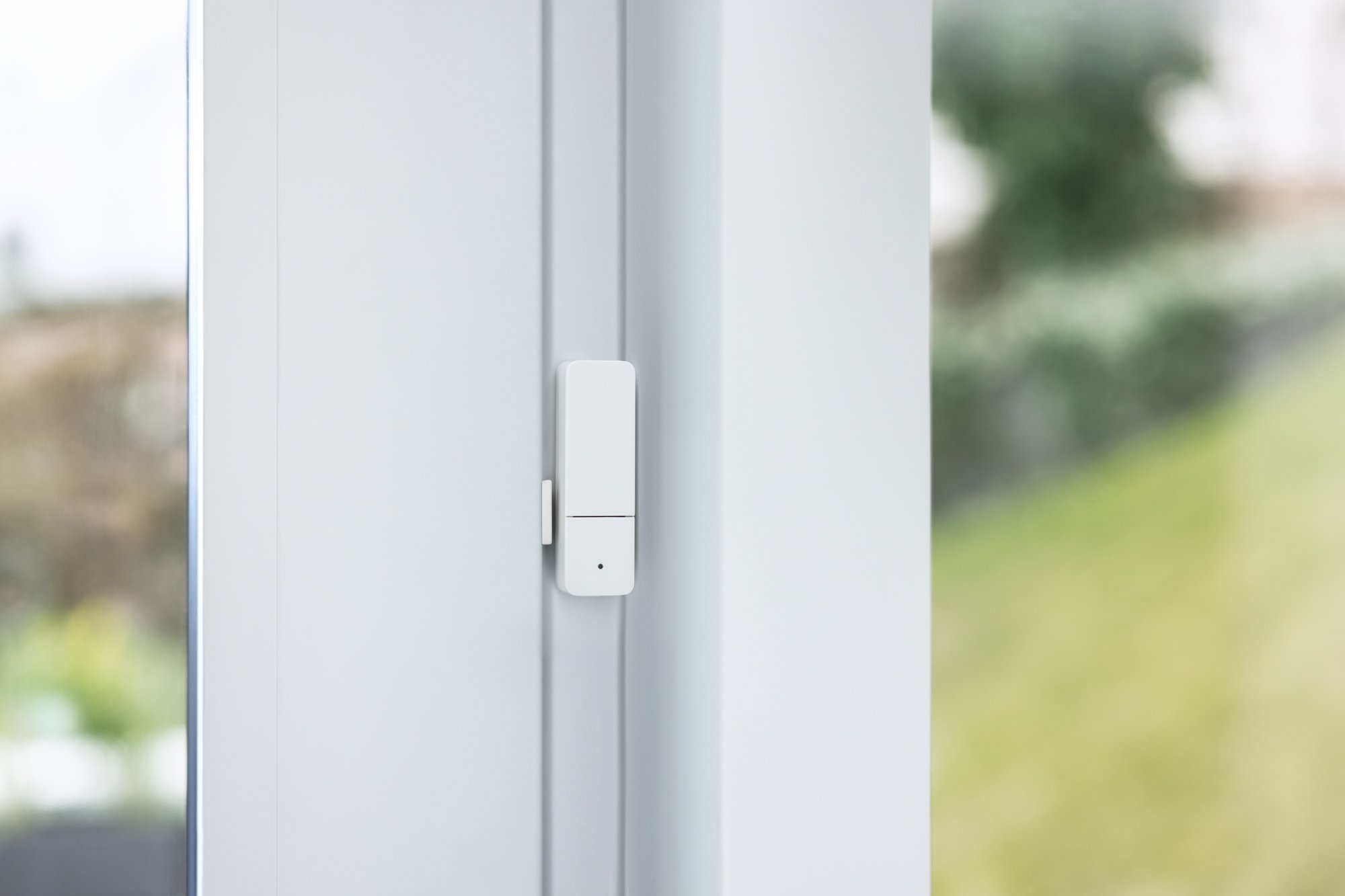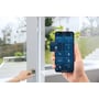 Den smarte dør- og vinduessensor II registrerer pålideligt åbne døre og vinduer og viser altid status i appen. Den ekstra tynde magnetenhed fastgøres upåfaldende på vinduesrammen, selv ved flerlagsvinduer.