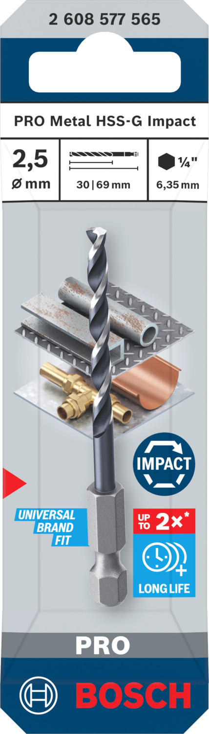 Bosch HSS-G Impact metalbor til metalboring. Med en borediameter på 2,5 mm.