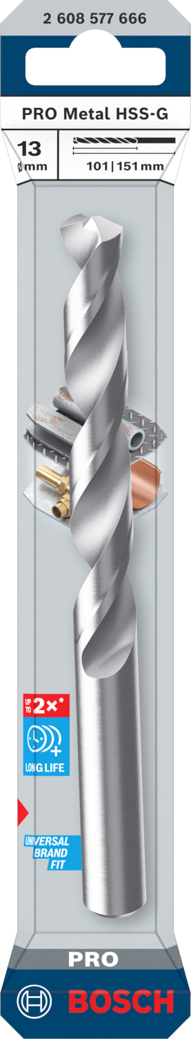 Bosch HSS-G metalbor med en borediameter på 13 mm og en længde på 151 mm. Ideel til præcisionsboring i metal.