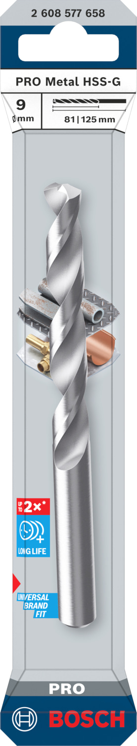 Bosch HSS-G metalbor med en borediameter på 9 mm og en længde på 125 mm. Ideel til præcisionsboring i metal.