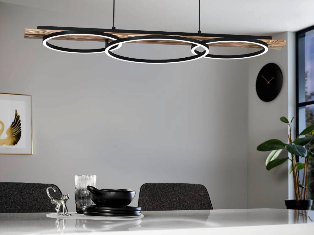 Boyal langbordspendlen fra EGLO er en elegant og moderne lampe, der passer perfekt over spisebordet. Med sin rustikke finish og LED-teknologi kombinerer den stil med funktionalitet.