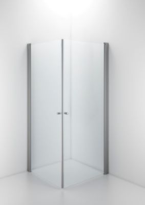 Space brusehjørne 80x80 cm. Halvt indrammet med lige døre i klart hærdet glas og knopgreb. Med hæve-sænke-mekanisme.
