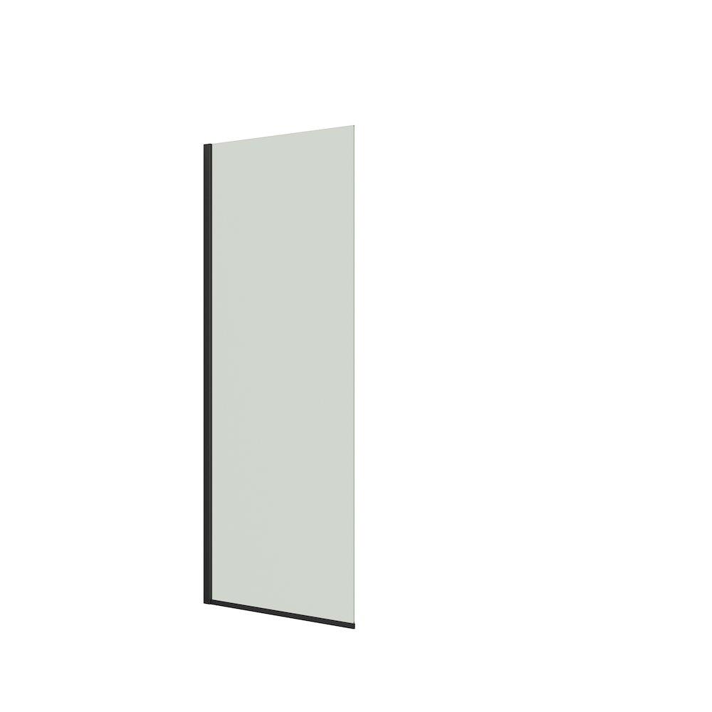 Fast væg med sort profil og klart glas. Mål: H:197,5 x 87-89 cm. Vendbar og justerbar, kan kombineres med dør A, B og C. Glasset kan justeres 20 mm.
