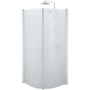 Denne buede svingdør fra Contura Shower Space kombinerer funktionalitet med et stilrent design. Døren er udstyret med hvidlakerede profiler og en elegant profilhåndtag. Det matterede hærdede sikkerhedsglas sikrer privatliv og holdbarhed.