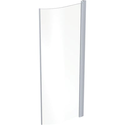 En elegant, buet svingdør til brusenichen. Med mat aluminiumsprofil og klart hærdet sikkerhedsglas. Døren er vendbar og justerbar.