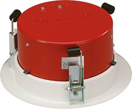 Metal brandkuppel designet til LBC 3086/41 loft højttaler. Denne firedome er udført i RAL 3000 farve.