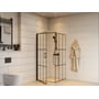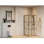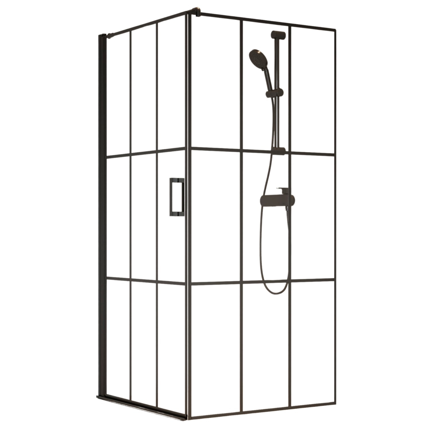 Skab et moderne og funktionelt badeværelse med Brasta Kristina svingdøren, der kombinerer en elegant svingdør med en fast væg. Denne brusekabine er designet til hjørneplacering og giver et stilfuldt udtryk med sine klare glaspaneler og en diskret sort profil.