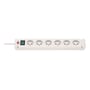 Bremounta stikdåse med 6 udtag, 3 meter H05VV-F 3G1.5 kabel, afbryder og børnesikring i hvid.