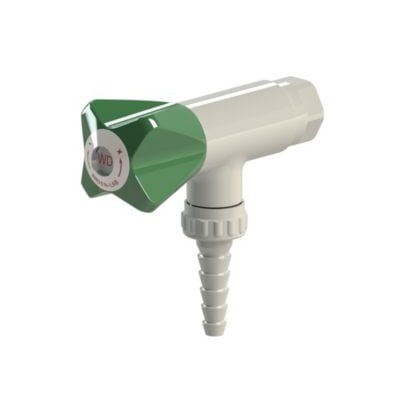 Envejs aftapperventil i rustfrit stål med aftagelig slangespids. Vægmonteret, 3/8" NPT montage og G1/2" slange tilslutning. Velegnet til WDI medie.