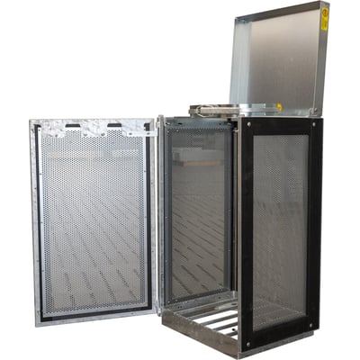 Affaldsstativ fra Brovst Blikvarer til 1 pose. Sort med hulplade.