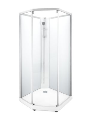 Showerama 10-5 classic brusekabine med femkantet form, 80x90 cm. Vælg mellem klart eller frostet glas.