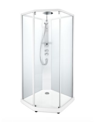 Showerama 10-5 comfort er en moderne og rummelig brusekabine med et femkantet design. Vælg mellem klar eller frostet glas.