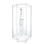 Showerama 10-5 classic er en femkantet brusekabine på 90x90 cm med hvide profiler og klart glas. Tilbyder høj komfort og moderne design.