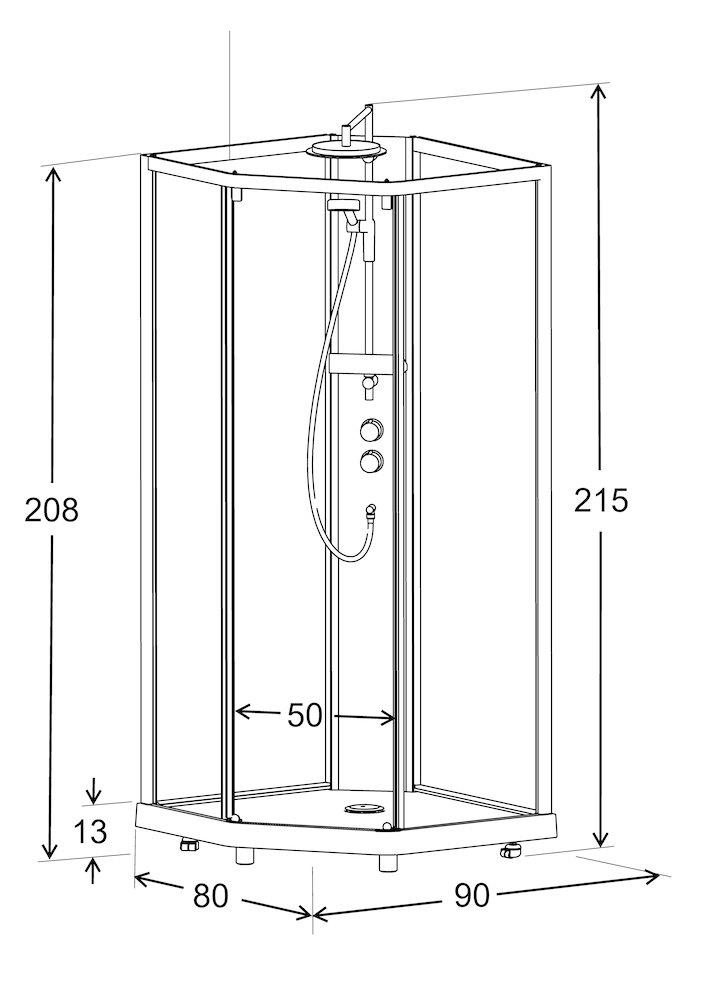 Showerama 10-5 comfort er en femkantet brusekabine med et moderne design og høj komfort. Mål: 90x80 cm.