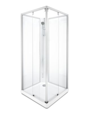 Showerama 10-5 classic brusekabine i klart glas med aluminiumsprofiler. Mål: 90x90 cm, højde 208 cm. Med skydedør.