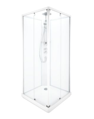 Showerama 10-5 comfort brusekabine i moderne design med høj komfort. Vælg mellem firkantede eller femkantede modeller med hvide eller børstede aluminiumsprofiler.