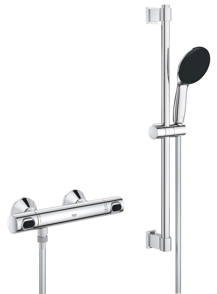 Grohe Precision Flow brusesystem med termostat til vægmontering. Består af termostat og Vitalio Start 110 brusesæt.