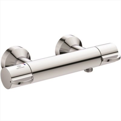 Ceraplus Safe brusearmaturet fra Ideal Standard kombinerer et elegant design med høj funktionalitet. Armaturet er udført i krom og har en blank overflade, der komplementerer moderne badeværelsesindretninger. Med en bredde på 296 mm og et fremspring på 115 mm passer det ind i de fleste brusenicher.