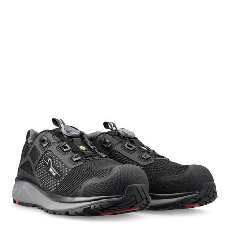 Denne smarte og lette sikkerhedssko er certificeret efter de nyeste standarder fra 2022. Overdelen er fremstillet af strikket, åndbar polyester med strategisk placerede KPU-elementer, der sikrer ekstra stabilitet og styrke. Den strikkede konstruktion bidrager til en fleksibel pasform og minimerer spild under produktionen. Skoen er desuden behandlet med en coating, der giver en vandafvisende effekt.