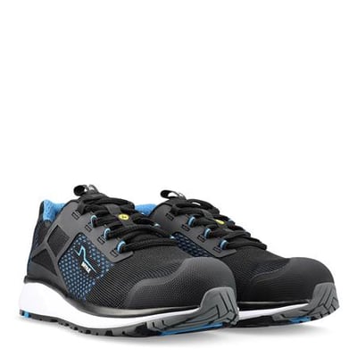Smart og let sikkerhedssko certificeret efter nye standarder. Åndbar polyesteroverdel med KPU-elementer for stabilitet. ESD-godkendt.